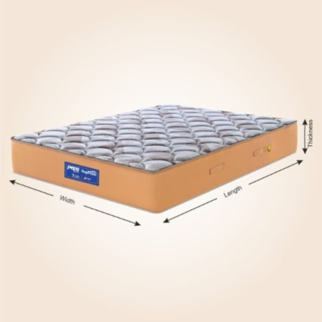 Experience luxurious comfort and superior back support with Peps Mattress, designed with advanced spring technology, premium cushioning layers, and breathable fabric to ensure proper spinal alignment, reduced motion transfer, and a cool, restful sleep every night—perfect for those who value durability, hygiene, and long-lasting performance for a healthier lifestyle.